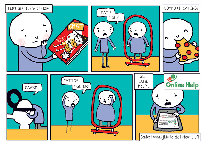 Of course the first person to speak to is your child but you can get support in doing this by speaking to your paediatrician, family doctor or your child’s school councillor (SPOS in Luxembourgish Schools). You can also contact the KJT Online Help Service for Parents in Luxembourg, which is free, confidential and anonymous. Your child may also contact the KJT Online Help Service for Children & Youths too. These services are offered in English, French, German & Luxembourgish. All you need to do is go to www.kjt.lu and choose your language.